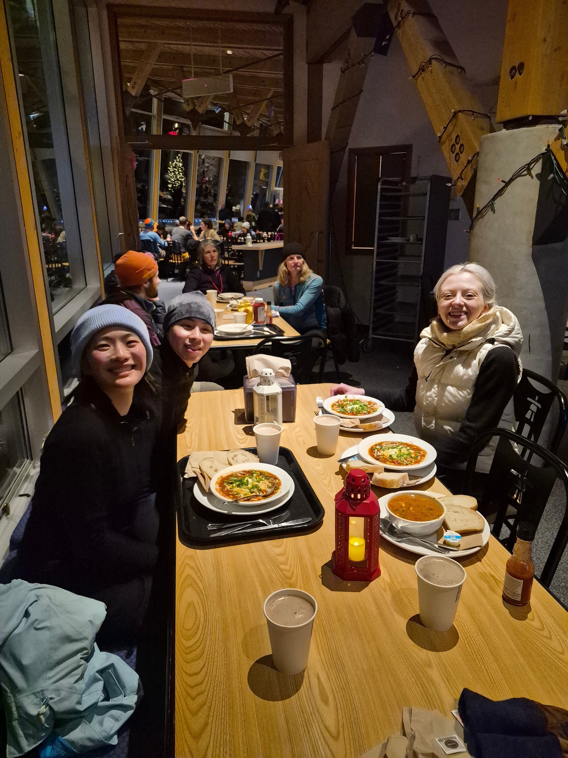 After exercising the group comes together in the lodge and warms up with a stew of the day and a hot chocolate. They also sell beer there...